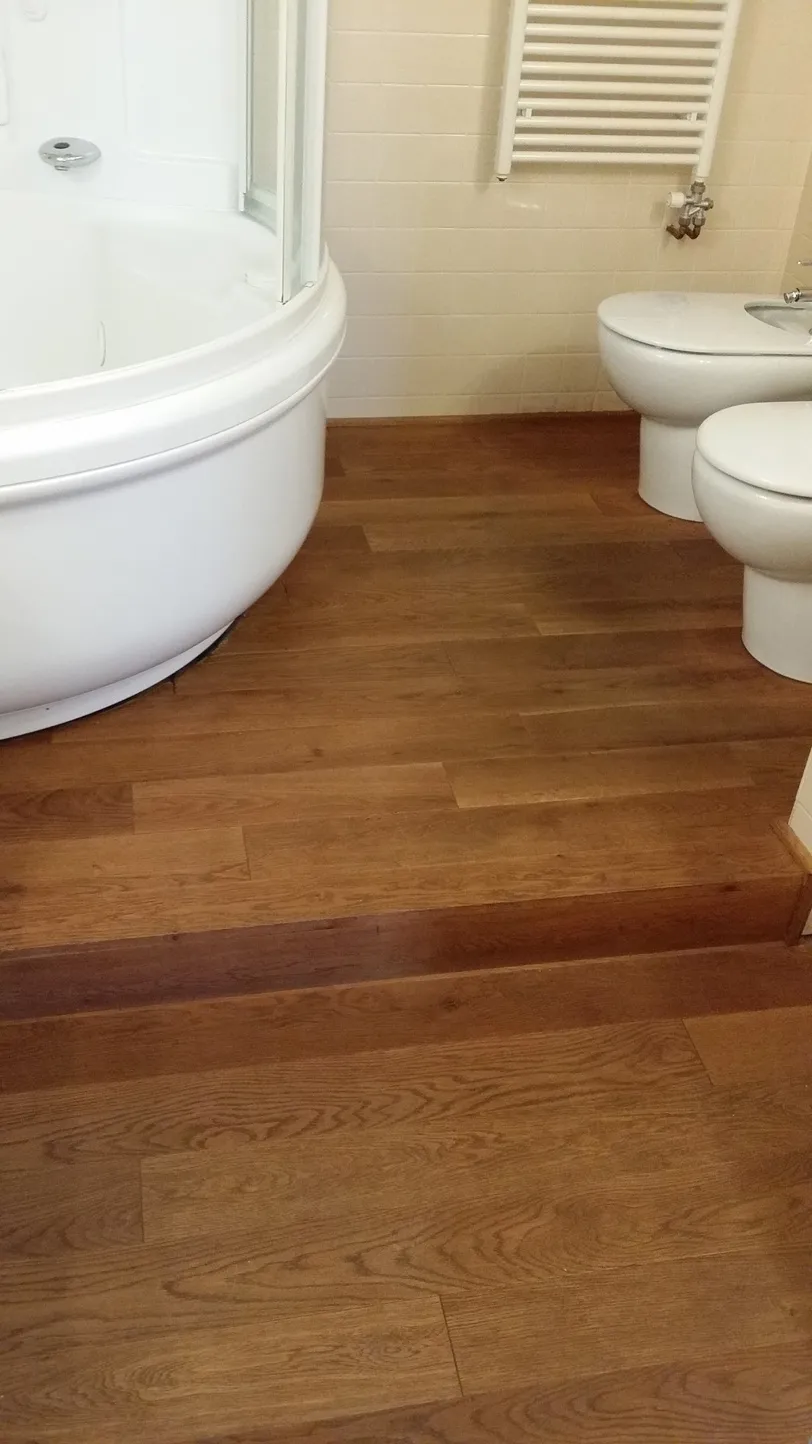 El parquet flotante es un pavimento muy práctico y económico que nos permite crear ambientes cálidos y elegantes. Una de sus mayores prestaciones es su rápida instalación y que inmediatamente de ser instalado puede pisarse y hacer uso de él. Este tipo de parquet tiene una capa de madera noble de unos 4 mm. y su deterioro a través del tiempo nos permite restaurarlo mediante la realización de un pulido y posterior barnizado que lo dejarán como nuevo. Otra prestación que permite este tipo de parquet es que puede teñirse y cambiar el tono para darle un toque renovado a nuestro suelo. Hay una gran variedad de tonos y acabados, podemos elegir parquet con biselados depende de el efecto que deseamos lograr o acabados en aceite o barnices mate o brillantes.